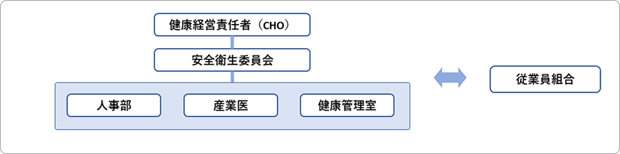 健康経営責任者(CHO)は社長が、労働安全衛生責任者は人事・人材戦略担当役員が担当しています。