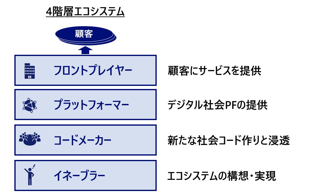 NRI野口:フロントプレーヤー、プラットフォーマー、コードメーカー、イネーブラーの4層モデルについてお話したいと思います。